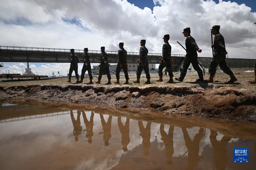 當日,在青海省海西蒙古族藏族自治州格爾木市唐古拉山鎮,武警青??傟牶N髦ш牴俦陂L(cháng)江源沱沱河開(kāi)展“守衛長(cháng)江源”主題黨日活動(dòng)。