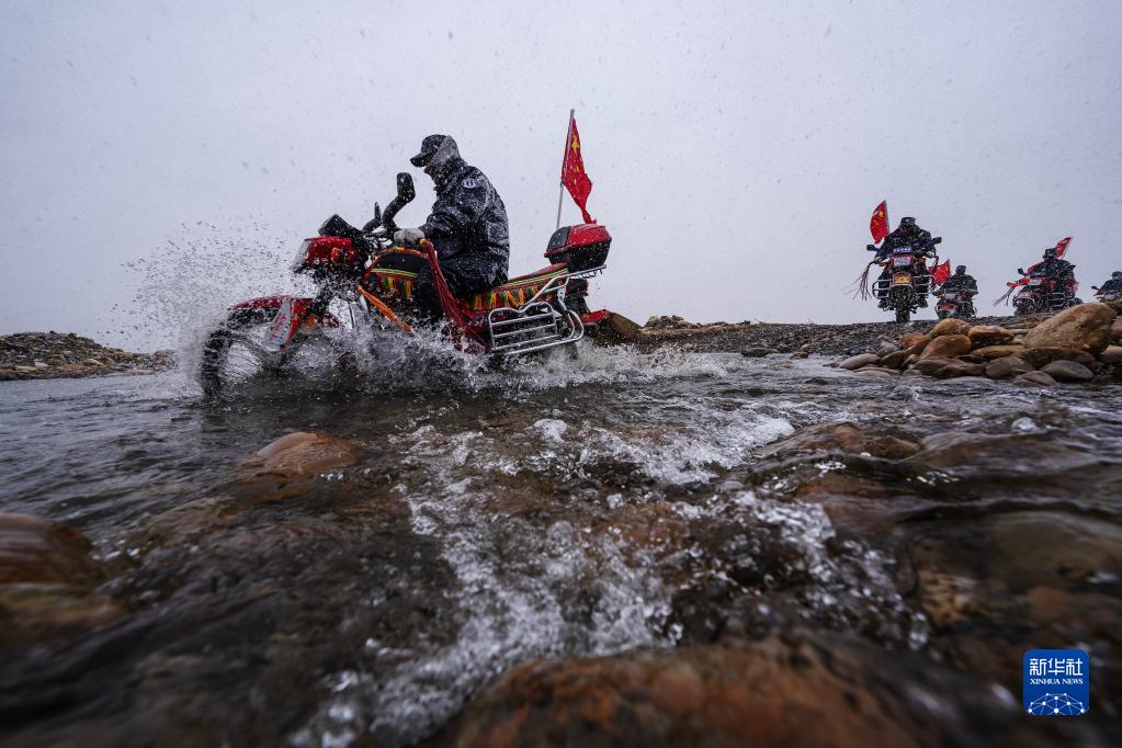 車(chē)輪滾滾,黃沙漫漫,一隊摩托車(chē)風(fēng)馳電掣般駛來(lái)……這里是平均海拔超過(guò)5000米的西藏日喀則市薩嘎縣昌果鄉,雖然已是初夏時(shí)節,但依然寒風(fēng)刺骨。50歲的昌果護邊聯(lián)防隊隊長(cháng)石角帶領(lǐng)18名隊員,騎著(zhù)摩托車(chē)在邊境線(xiàn)巡邏。