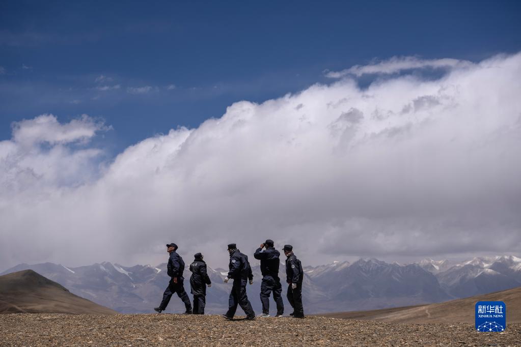 6月2日,石角(右二)帶領(lǐng)護邊聯(lián)防隊隊員在33號界樁附近巡邏。