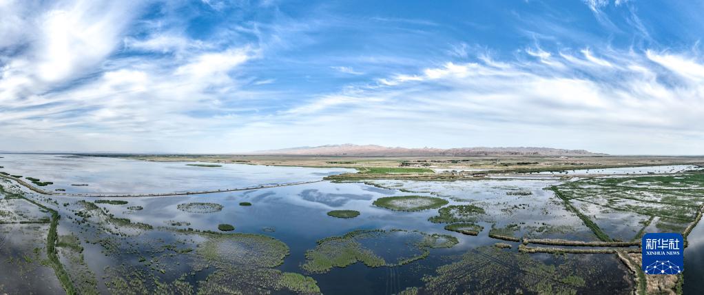 這是6月4日拍攝的位于內蒙古巴彥淖爾市烏拉特前旗的烏梁素海(無(wú)人機全景照片)。