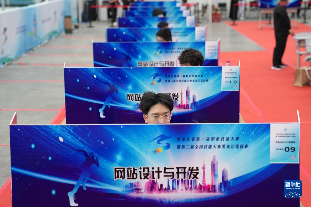 6月5日,選手在網(wǎng)站設計與開(kāi)發(fā)比賽項目現場(chǎng)進(jìn)行比賽。