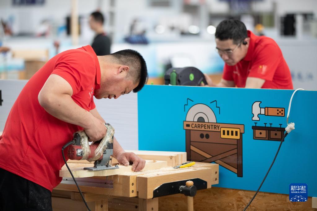 6月5日,選手在參加木工比賽。