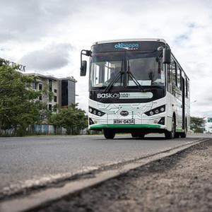 6月3日,一輛電動(dòng)巴士行駛在肯尼亞內羅畢街頭。