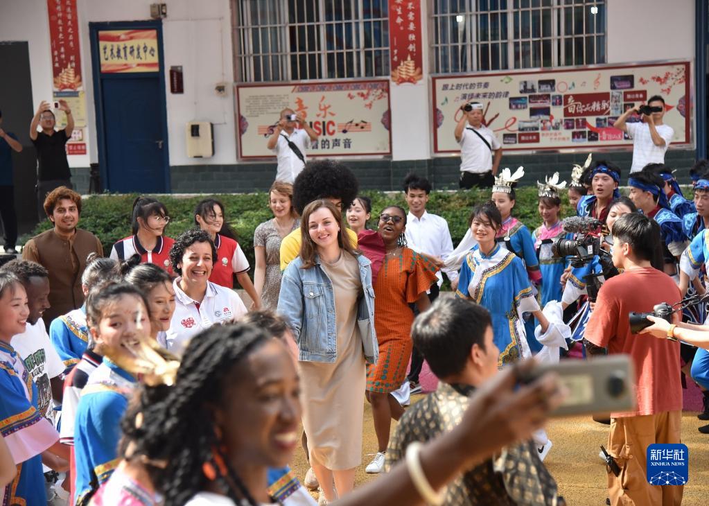 近日,“邂逅中國”來(lái)華留學(xué)生社會(huì )實(shí)踐活動(dòng)在貴州舉行。6月5日,來(lái)自突尼斯、巴基斯坦、老撾、巴西、印度尼西亞等國家的20名來(lái)華留學(xué)生來(lái)到貴州省黔南布依族苗族自治州三都水族自治縣的三都高級中學(xué),和學(xué)生們一起參加該校舉行的第一屆國際文化節。