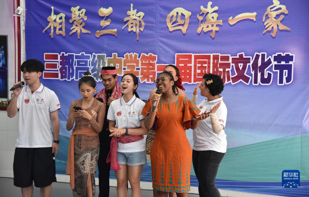 6月5日,來(lái)華留學(xué)生在三都高級中學(xué)第一屆國際文化節上演唱歌曲。
