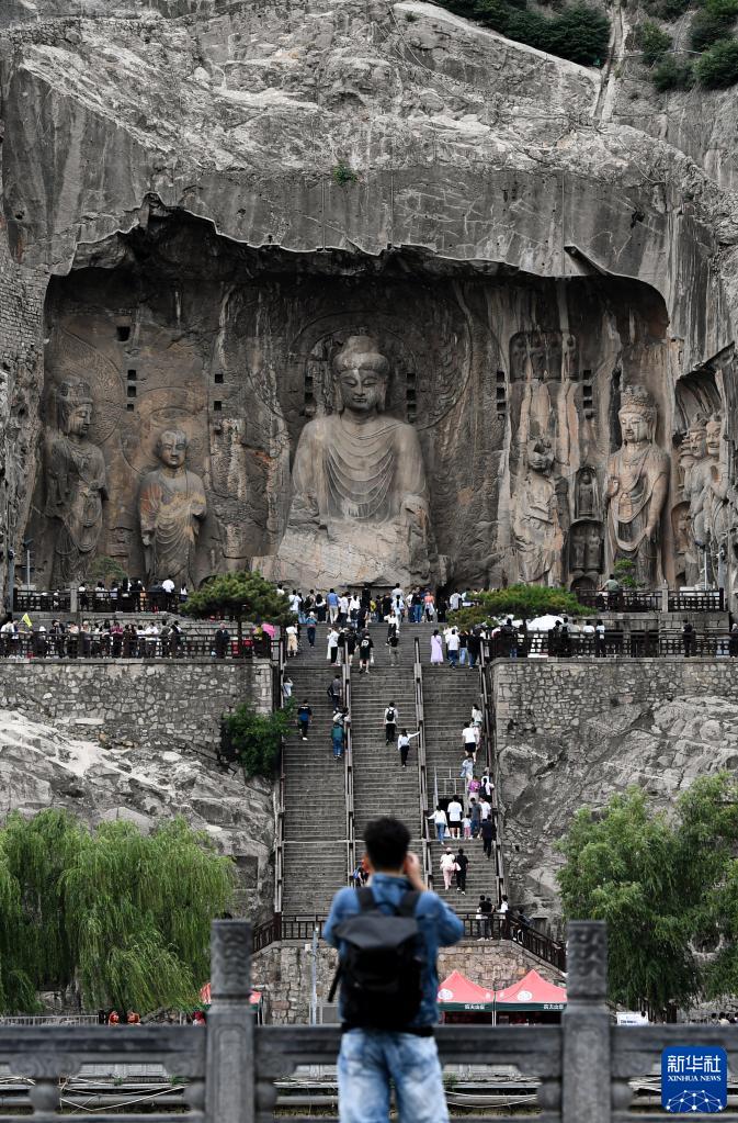 6月5日,游客在洛陽(yáng)龍門(mén)石窟景區游覽。