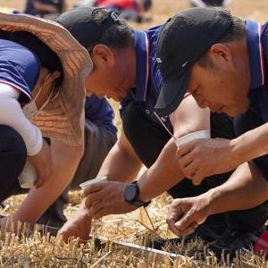 6月6日,農機手駕駛收割機進(jìn)行機收減損比武競賽。