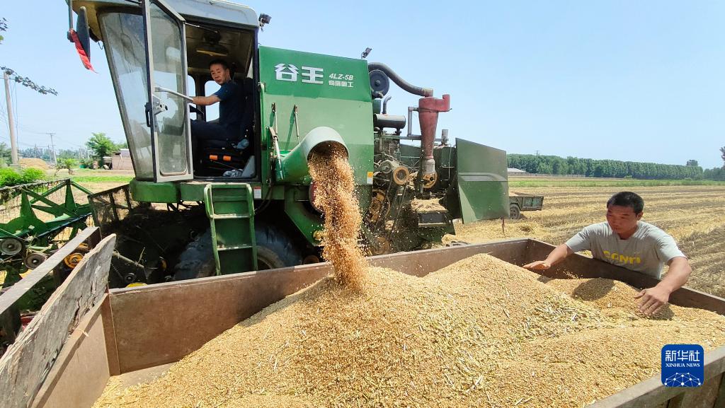 6月6日,農民在河南省開(kāi)封市祥符區范村鄉袁府莊村田間收獲小麥。