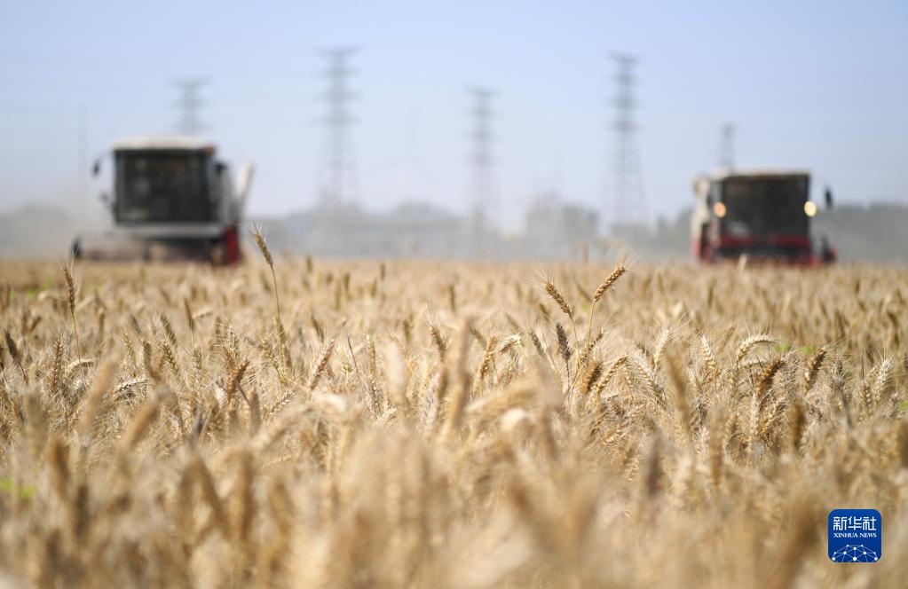 6月6日,在河南省安陽(yáng)市滑縣萬(wàn)古鎮,收割機在搶收種子田的小麥。