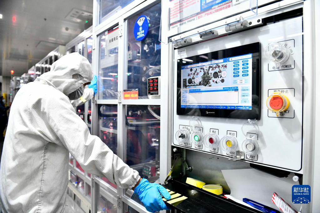 6月6日,在山東吉利欣旺達動(dòng)力電池有限公司,工作人員在鋰電池生產(chǎn)線(xiàn)值守。
