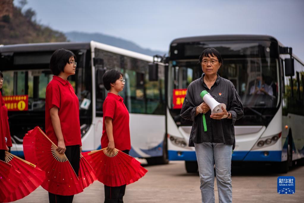 6月7日,張桂梅帶著(zhù)低年級學(xué)生給準備出發(fā)參加高考的同學(xué)們加油鼓勁。