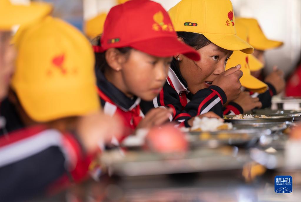 6月5日,扎西宗鄉完全小學(xué)的學(xué)生在食堂吃午飯。新華社記者 費茂華 攝