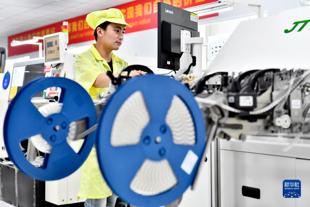 6月7日,在山東魔意科技創(chuàng )新有限公司,工作人員在生產(chǎn)LED智能照明產(chǎn)品。