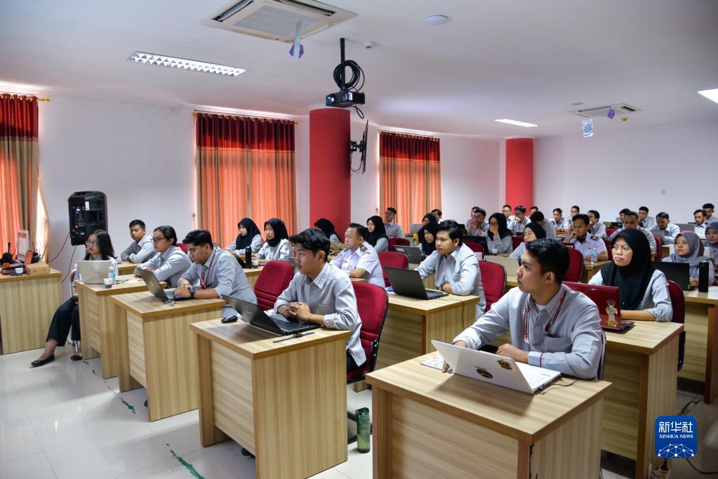 6月7日,在位于印度尼西亞茉莉芬市的印尼鐵路理工學(xué)院,學(xué)員們參加雅萬(wàn)高鐵應急值守人員培訓。