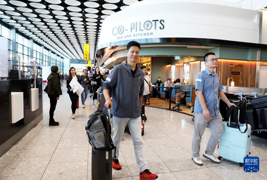 6月7日,搭乘中國南方航空CZ673首班航班的旅客抵達后走在英國倫敦希思羅機場(chǎng)內。