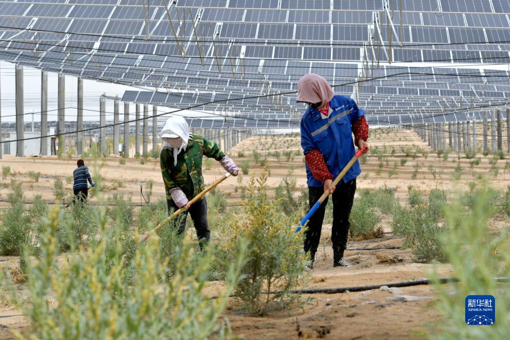 困難面前不低頭,敢把沙漠變綠洲。在八步沙“六老漢”奮斗精神鼓舞下,一代代勤勞樸實(shí)的人們奮戰在防沙治沙“接力賽”上??蒲腥藛T以沙為友,科學(xué)治沙讓沙化土地防治的可持續性顯著(zhù)增強。板上發(fā)電、板下種植、板間養殖、治沙改土的模式,使光伏產(chǎn)業(yè)與生態(tài)治理深度融合。人們從光伏治沙等沙產(chǎn)業(yè)中獲益,沙漠經(jīng)濟效益反哺荒漠化防治循環(huán)發(fā)展。