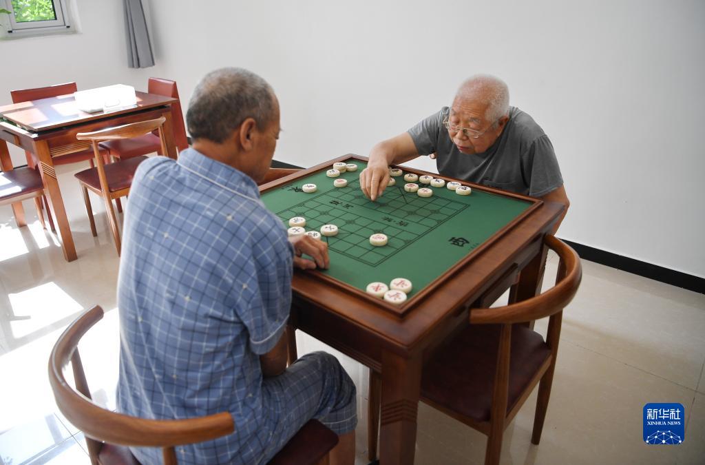 6月8日,老人們在河北省灤州市灤城街道東南都會(huì )社區一家社區養老中心內下象棋。