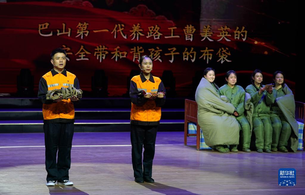 6月7日晚,在“鐵路老物件精品說(shuō)”巡回展演走進(jìn)三秦鐵路活動(dòng)中,鐵路新工講述巴山第一代養路工曹美英的事跡。