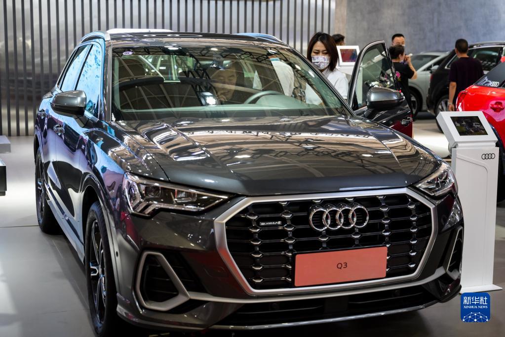 6月8日,觀(guān)眾在車(chē)展上了解參展汽車(chē)。