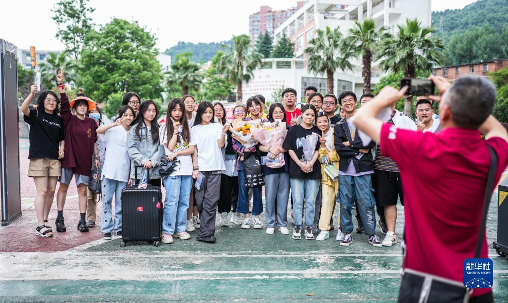 6月8日,在貴陽(yáng)市烏當中學(xué)考點(diǎn),考生結束考試后在考場(chǎng)外合影留念。