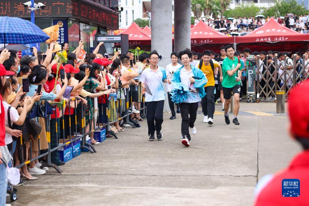 6月8日,考生沖出南寧市第二中學(xué)鳳嶺校區考點(diǎn)。