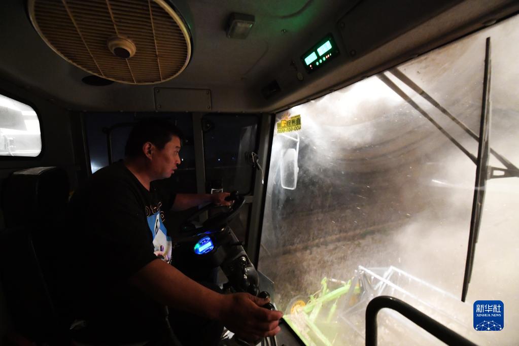 6月7日晚,農機手袁榮鵬駕駛收割機搶收小麥。