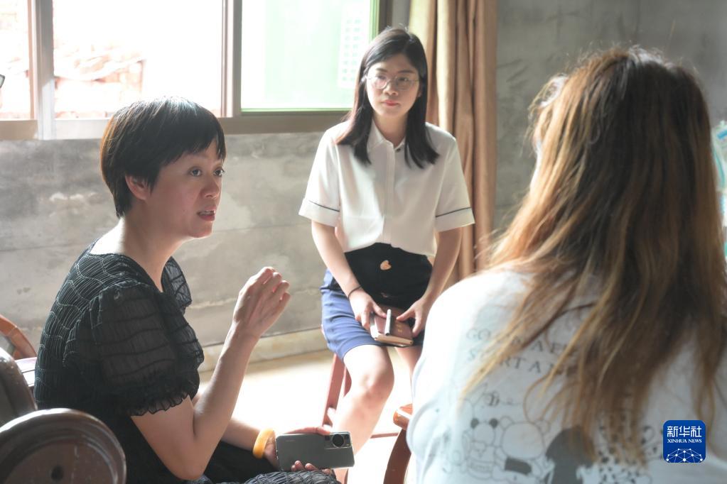6月8日,“茉莉姐姐”服務(wù)團隊成員、心理咨詢(xún)志愿者陳巧鈴(左一)和閩侯縣青口鎮婦聯(lián)干部謝琳楠(左二)在一位未成年受害者家里為受害人的父母開(kāi)展家庭教育指導。