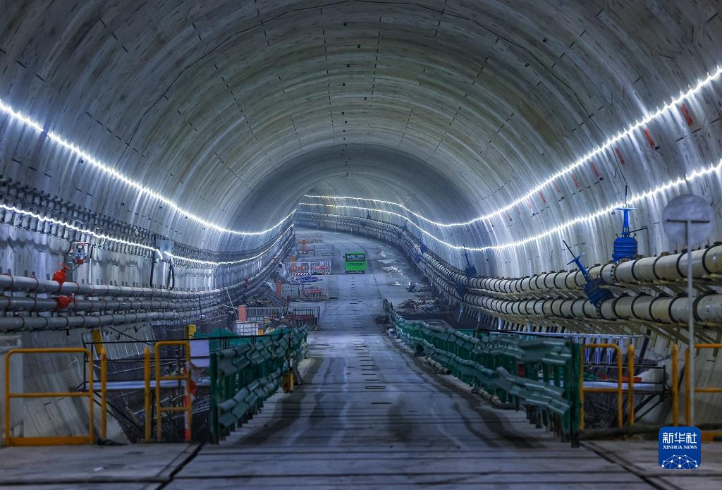 6月8日拍攝的深圳媽灣跨海通道已完成管片拼裝的隧道。