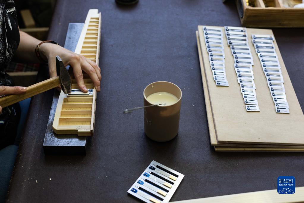 6月7日,在俄羅斯圖拉,工作人員安裝巴揚手風(fēng)琴的簧片。