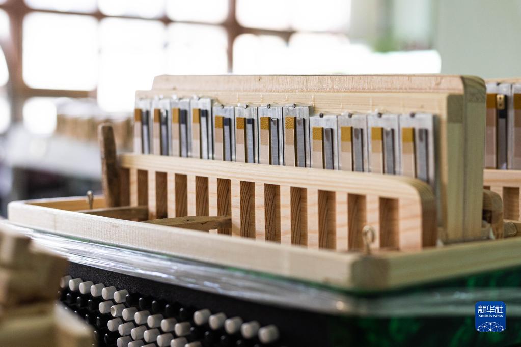 這是6月7日在俄羅斯圖拉拍攝的巴揚手風(fēng)琴簧片。