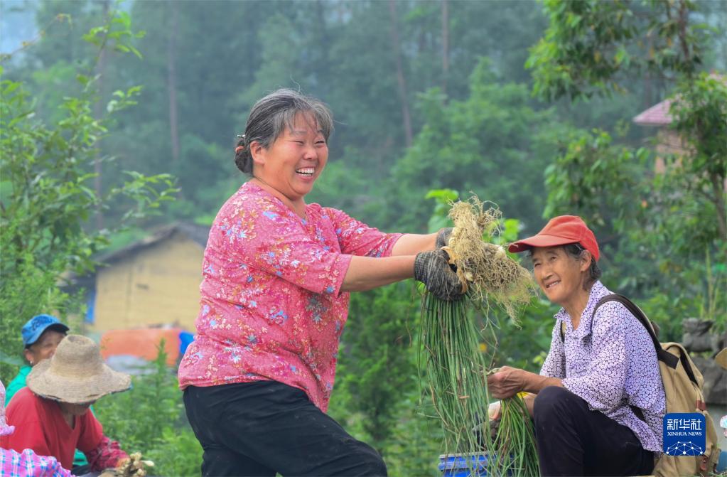 6月8日,在豐都縣虎威鎮大池社區的藠頭田,當地村民在種植大戶(hù)的組織下集體采收藠頭。