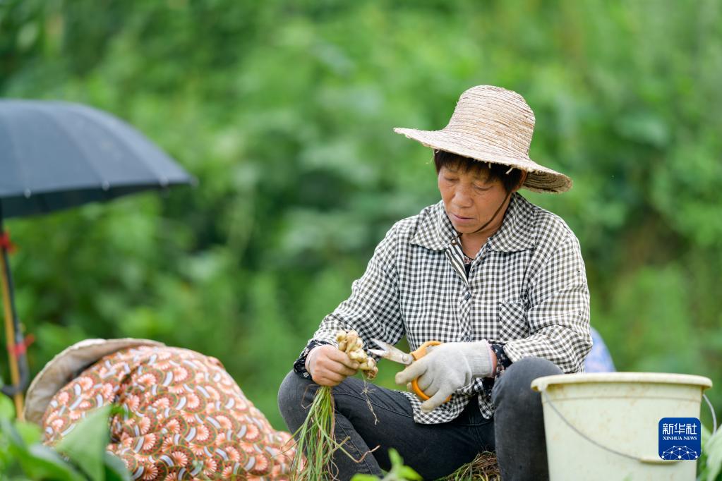 6月8日,在豐都縣虎威鎮大池社區的藠頭田,當地村民在種植大戶(hù)的組織下集體采收藠頭。