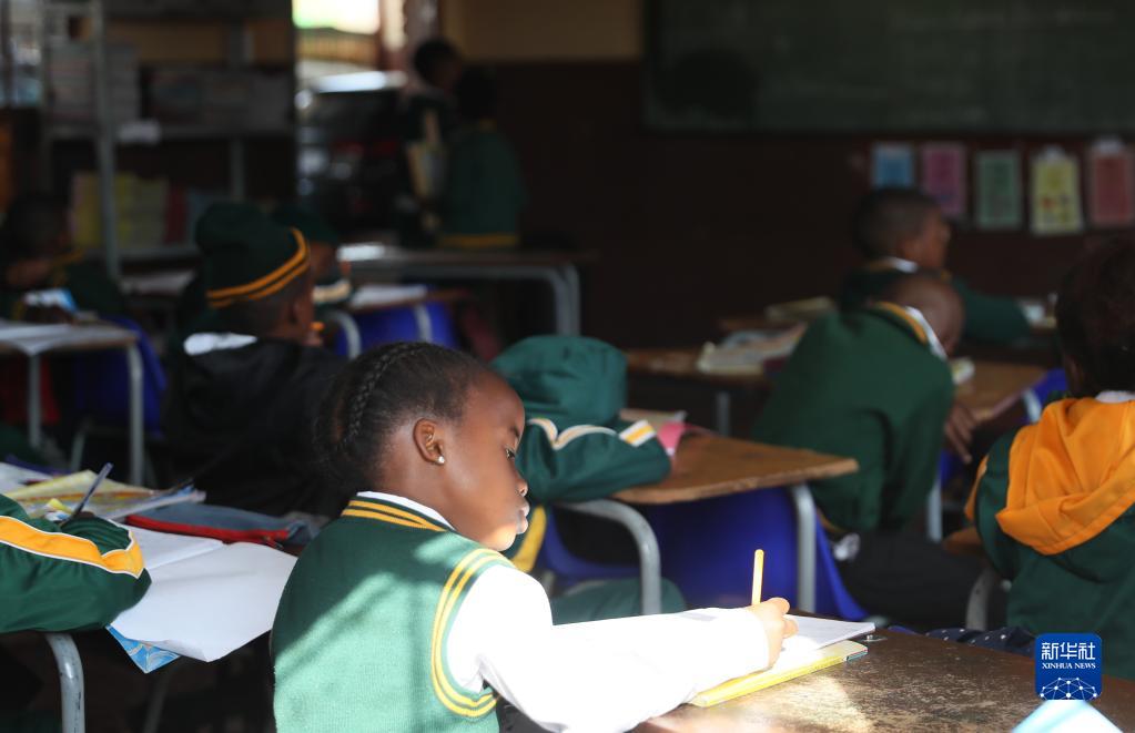 6月8日,在南非豪滕省,莫策戈法迪瓦小學(xué)的學(xué)生在教室內學(xué)習。