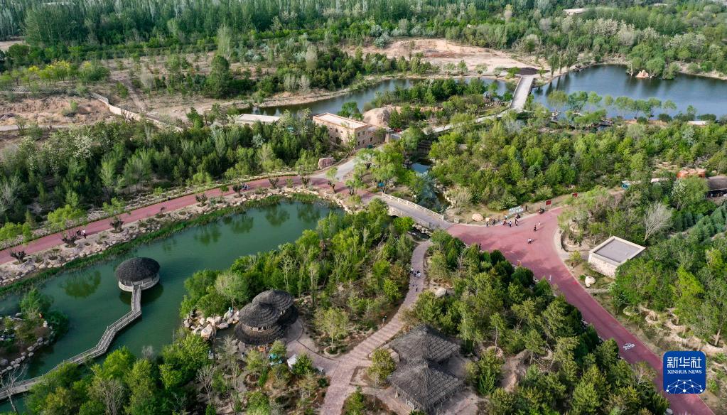 這是志輝源石酒莊與政府共建的賀蘭山運動(dòng)休閑公園,這里曾經(jīng)是一片礦坑(5月13日攝,無(wú)人機照片)。