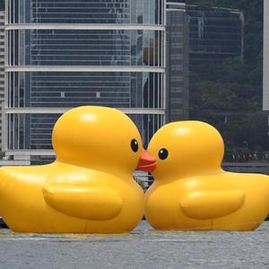 當日,兩只高約18米的“大黃鴨”亮相香港維多利亞港。這是闊別10年后,“大黃鴨”再度到港。據悉,兩只“大黃鴨”將于6月10日面向公眾開(kāi)放,展期約兩周。