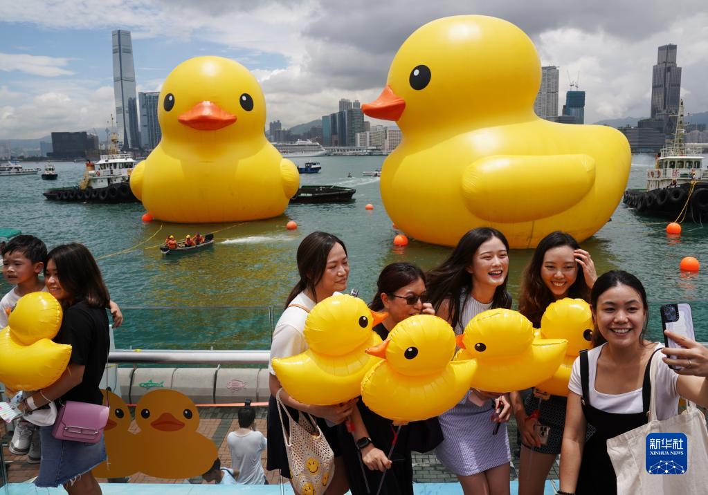 當日,兩只高約18米的“大黃鴨”亮相香港維多利亞港。這是闊別10年后,“大黃鴨”再度到港。據悉,兩只“大黃鴨”將于6月10日面向公眾開(kāi)放,展期約兩周。