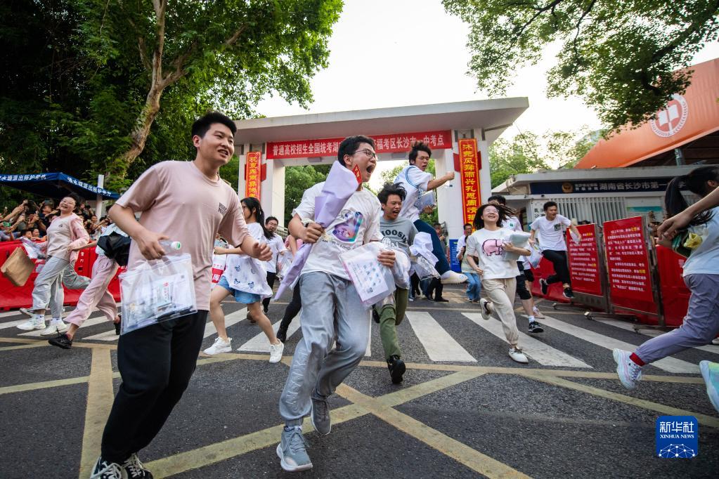 6月9日,在長(cháng)沙市第一中學(xué)考點(diǎn),考生在高考結束后慶祝。