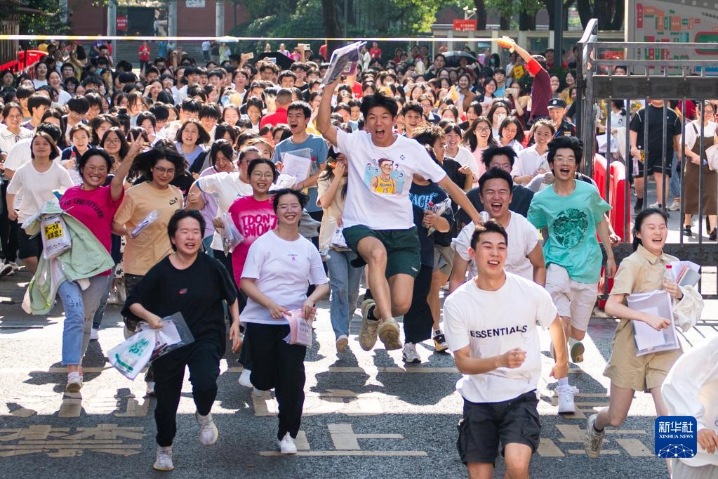 6月9日,在長(cháng)沙市第一中學(xué)考點(diǎn),考生在高考結束后慶祝。