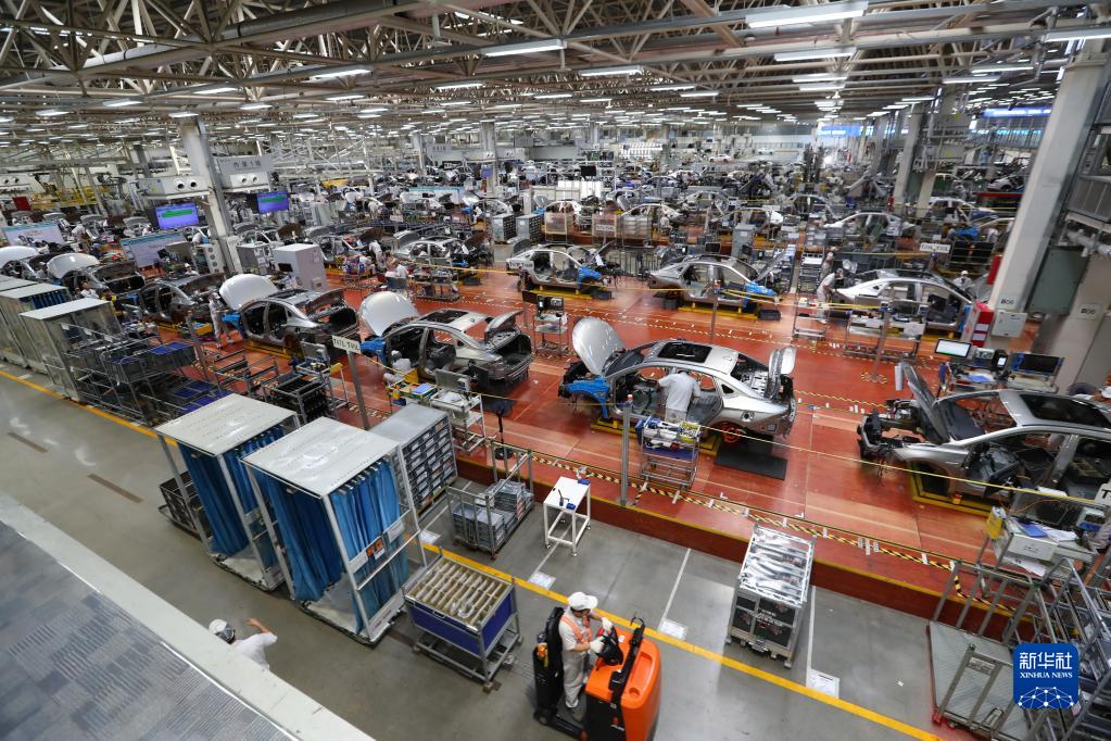 6月9日,工人在位于廣州番禺的廣汽埃安智能生態(tài)工廠(chǎng)內工作。