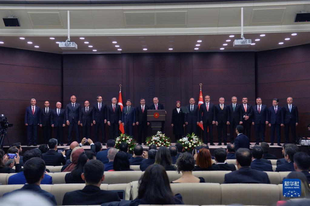 連任成功的土耳其總統埃爾多安3日在首都安卡拉宣誓就職,并宣布新一屆內閣成員名單。