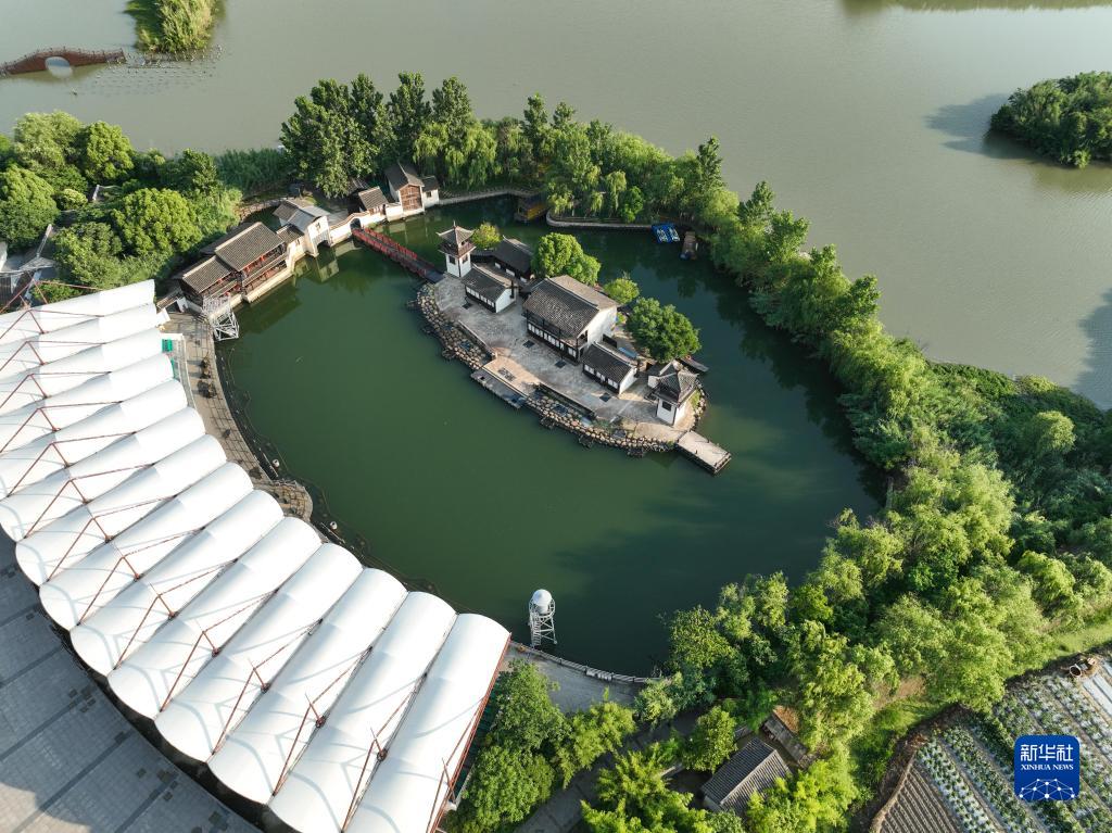 6月9日拍攝的沙家浜國家濕地公園景色(無(wú)人機照片)。