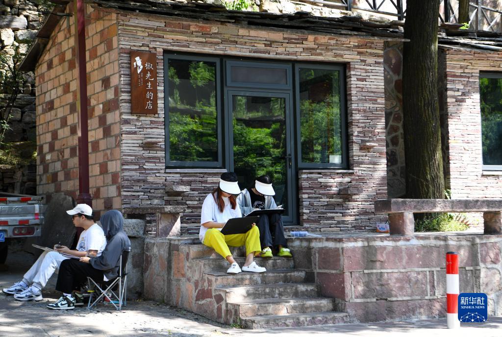 6月9日,學(xué)生在河南安陽(yáng)林州市石板巖鎮三畝地村寫(xiě)生。
