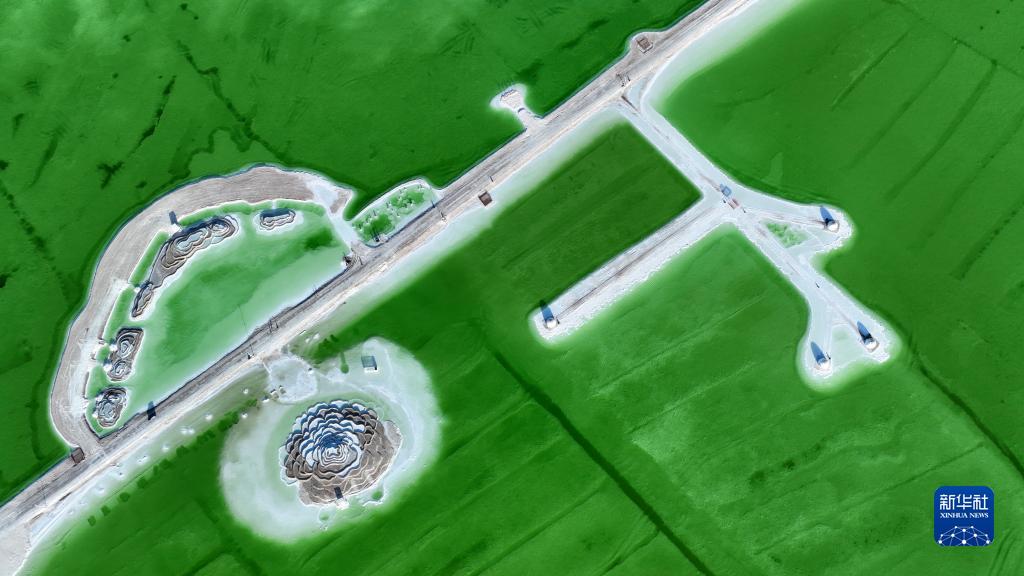 這是6月8日拍攝的察爾汗鹽湖景色(無(wú)人機照片)。