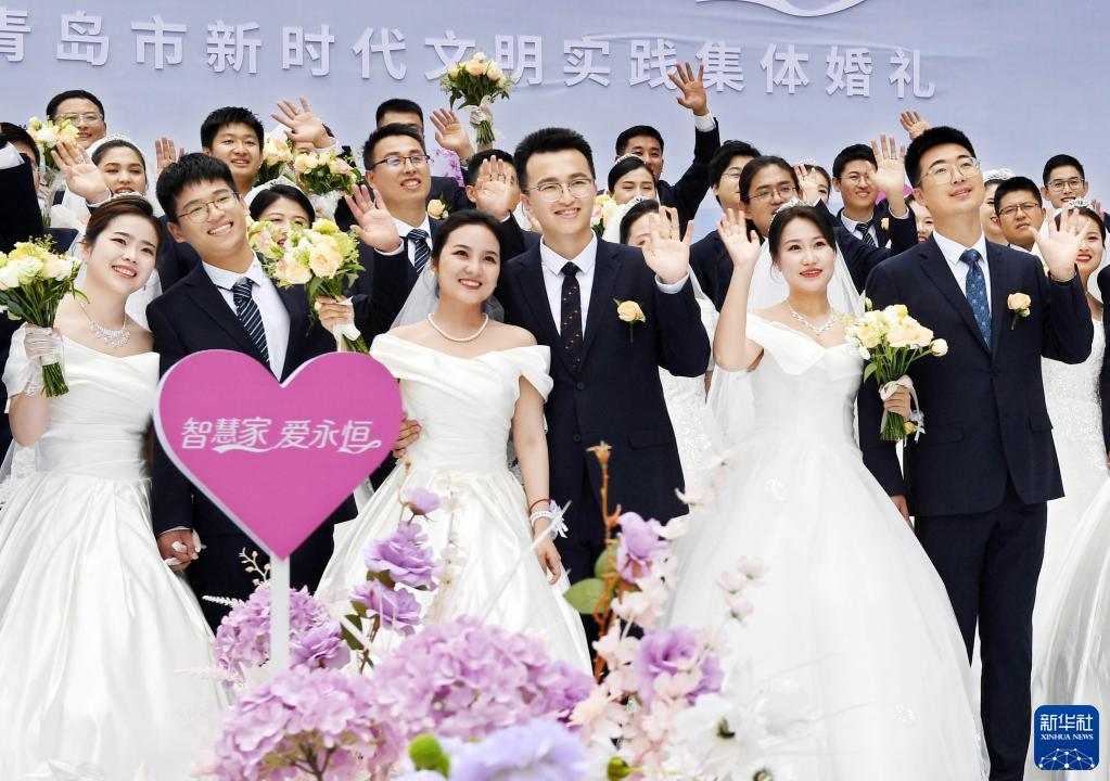 當日,“智慧家 愛(ài)永恒”——2023年青島市新時(shí)代文明實(shí)踐集體婚禮舉行,38對新人共同許下“恩愛(ài)永遠 相伴一生”愛(ài)的承諾。近年來(lái),青島市將節儉家風(fēng)與文明習俗相結合,大力提倡“喜事新辦、新事簡(jiǎn)辦”,引導人們積極踐行時(shí)代新風(fēng)。