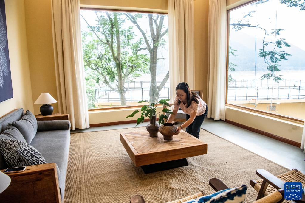 6月7日,在位于重慶市云陽(yáng)縣云陽(yáng)鎮蔬菜村的農文旅融合項目改造現場(chǎng),工作人員在布置民宿房間內飾。該項目由村集體與企業(yè)合作經(jīng)營(yíng),將當地閑置農房改造成環(huán)境優(yōu)美、各具特色的精品民宿,既滿(mǎn)足了人們親近鄉土自然的旅游消費需求,又持續帶動(dòng)當地村民增收就業(yè)。