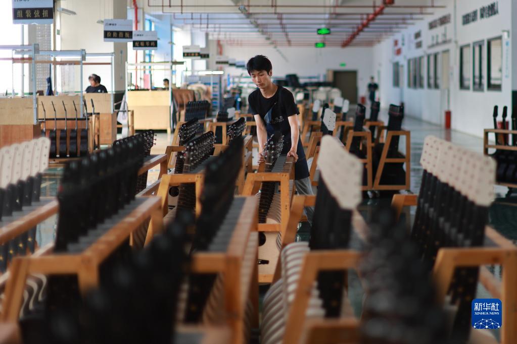 工作人員在正安吉他產(chǎn)業(yè)園內制作吉他(6月7日攝)。