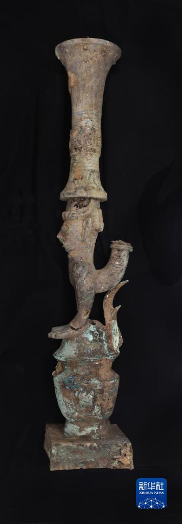 這是頂尊曲身銅神像實(shí)物,它是“數字化”復原的銅罍座倒立鳥(niǎo)足頂尊神像的一個(gè)部分。