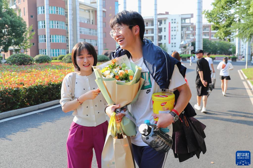 6月10日,在浙江省湖州市德清縣第一中學(xué)考點(diǎn),家長(cháng)給考生送上鮮花。
