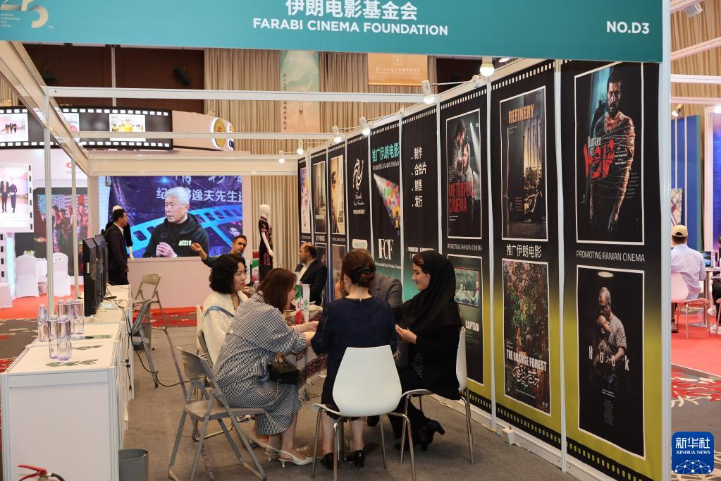 6月10日,咨詢(xún)者在第25屆上海國際電影節電影市場(chǎng)伊朗電影基金會(huì )展區與展商溝通。