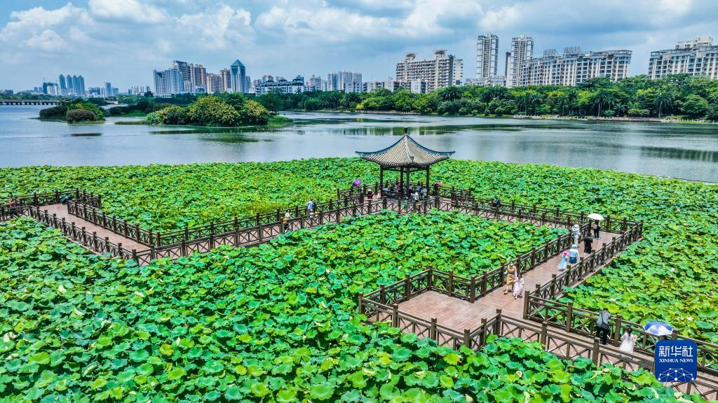 盛夏時(shí)節,廣西南寧市南湖之濱的荷花漸次綻放,吸引游客前來(lái)觀(guān)賞。